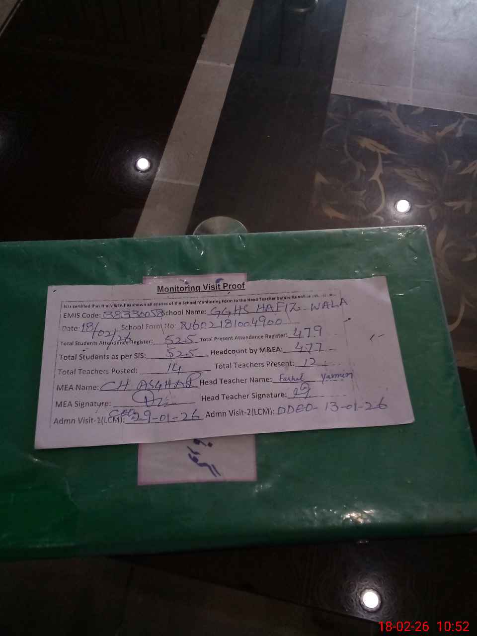 | Attendance Register | Head Teacher | MEA with School | Visit Proof |