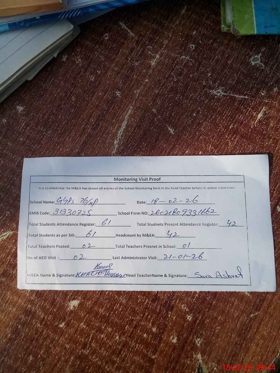 | EMIS Code: 31330725 | Name of School: GGPS CHAK NO.76/NP | |||