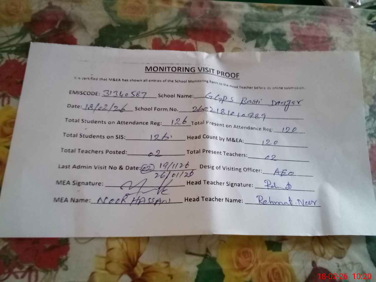 | EMIS Code: 31340587 | Name of School: GGPS BASTI DANGAR | |||