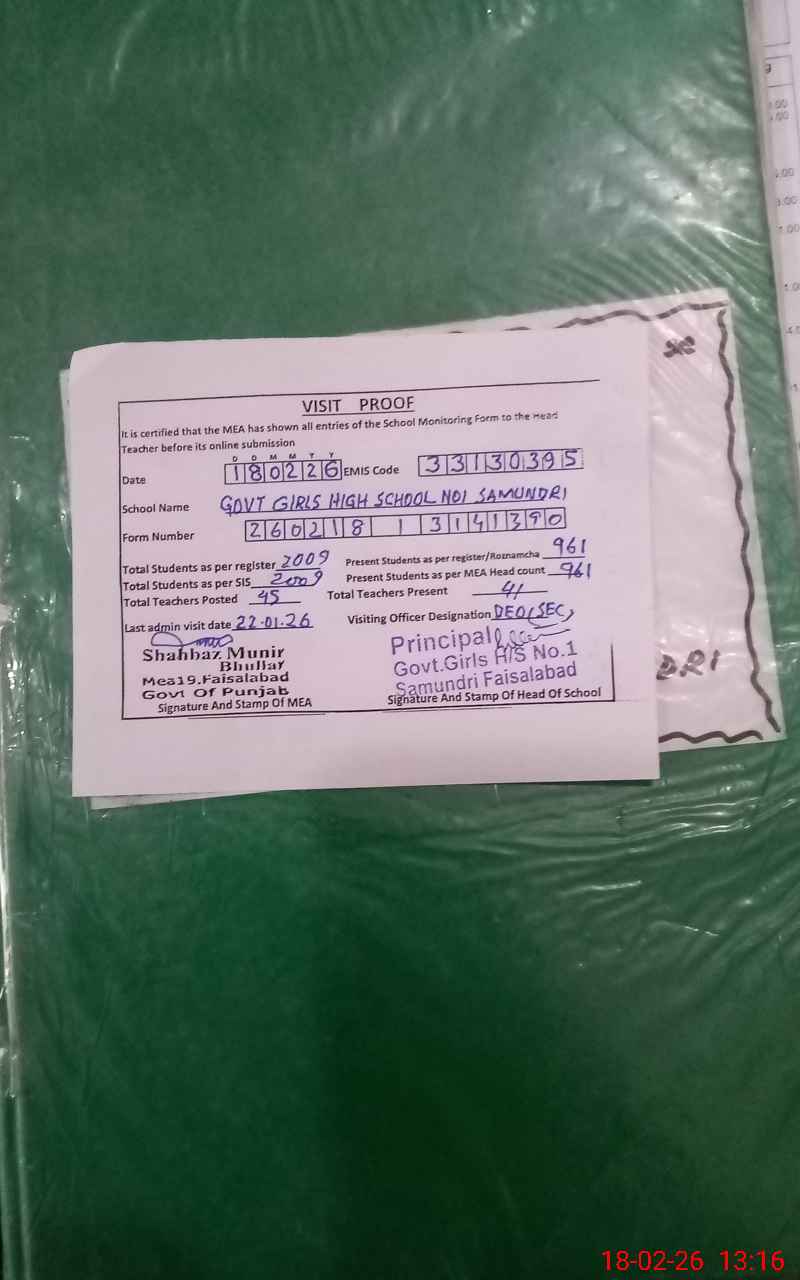 | EMIS Code: 33130395 | Name of School: GGHS NO. 1 SAMUNDRI | |||