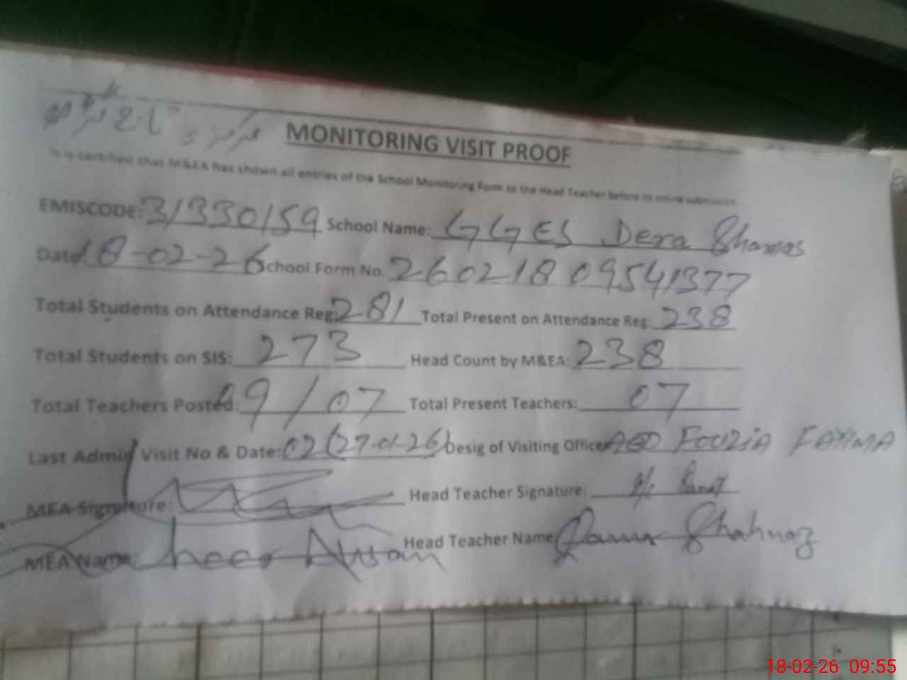| EMIS Code: 31330159 | Name of School: GGES DERA SHAMAS | |||