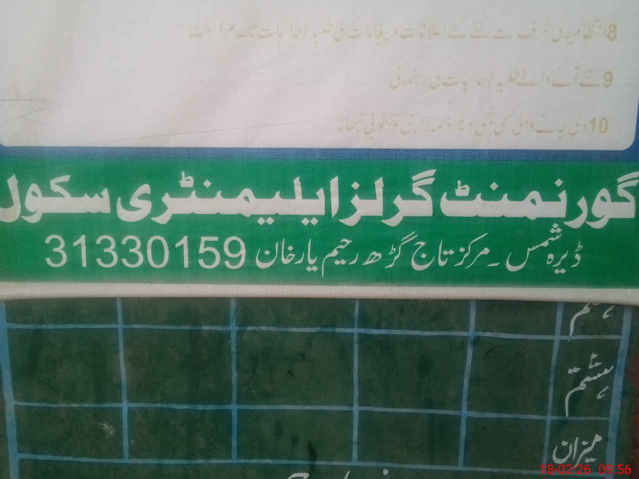 | District: RAHIMYAR KHAN | Tehsil: RAHIMYAR KHAN | Markaz: TAJ GARH-FEMALE | Level: Middle | |