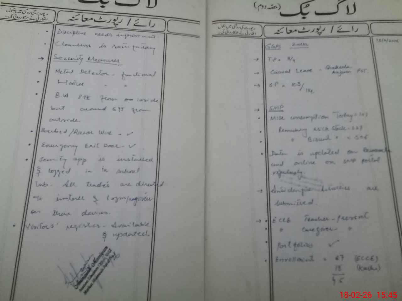 | Certified that this School was Inspected by the Undersigned MEA/DMO Today and the Information Stated Above is as Per Record. | |||||