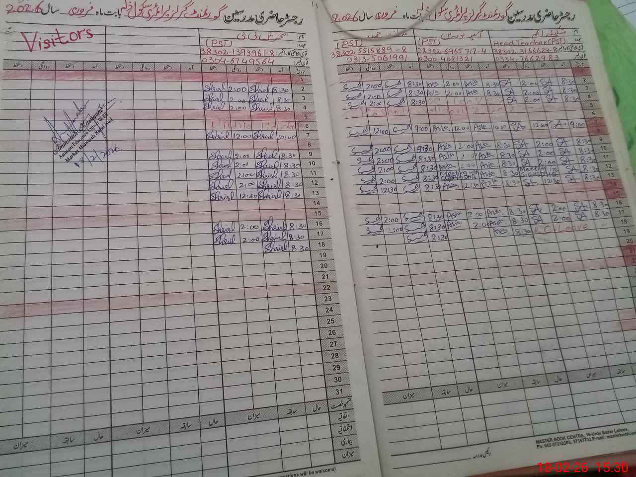| Name: Sh**** An**** Designation: (School Headmaster's/Headmistress's) PST Phone/Cell Number: 03**** |