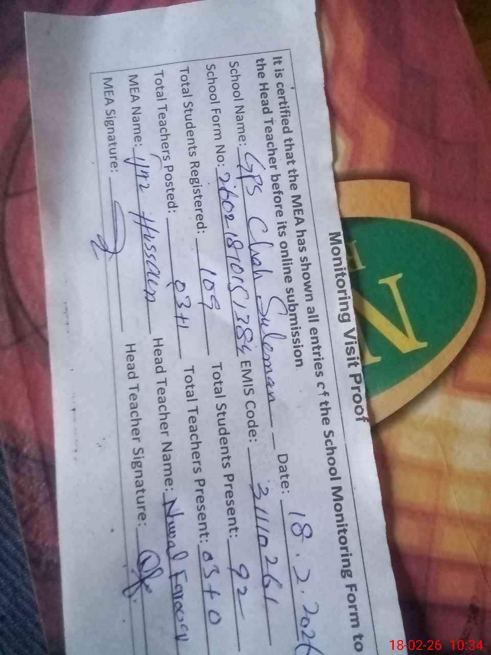 | EMIS Code: 31110261 | Name of School: GPS CHAH SULIMAN | |||