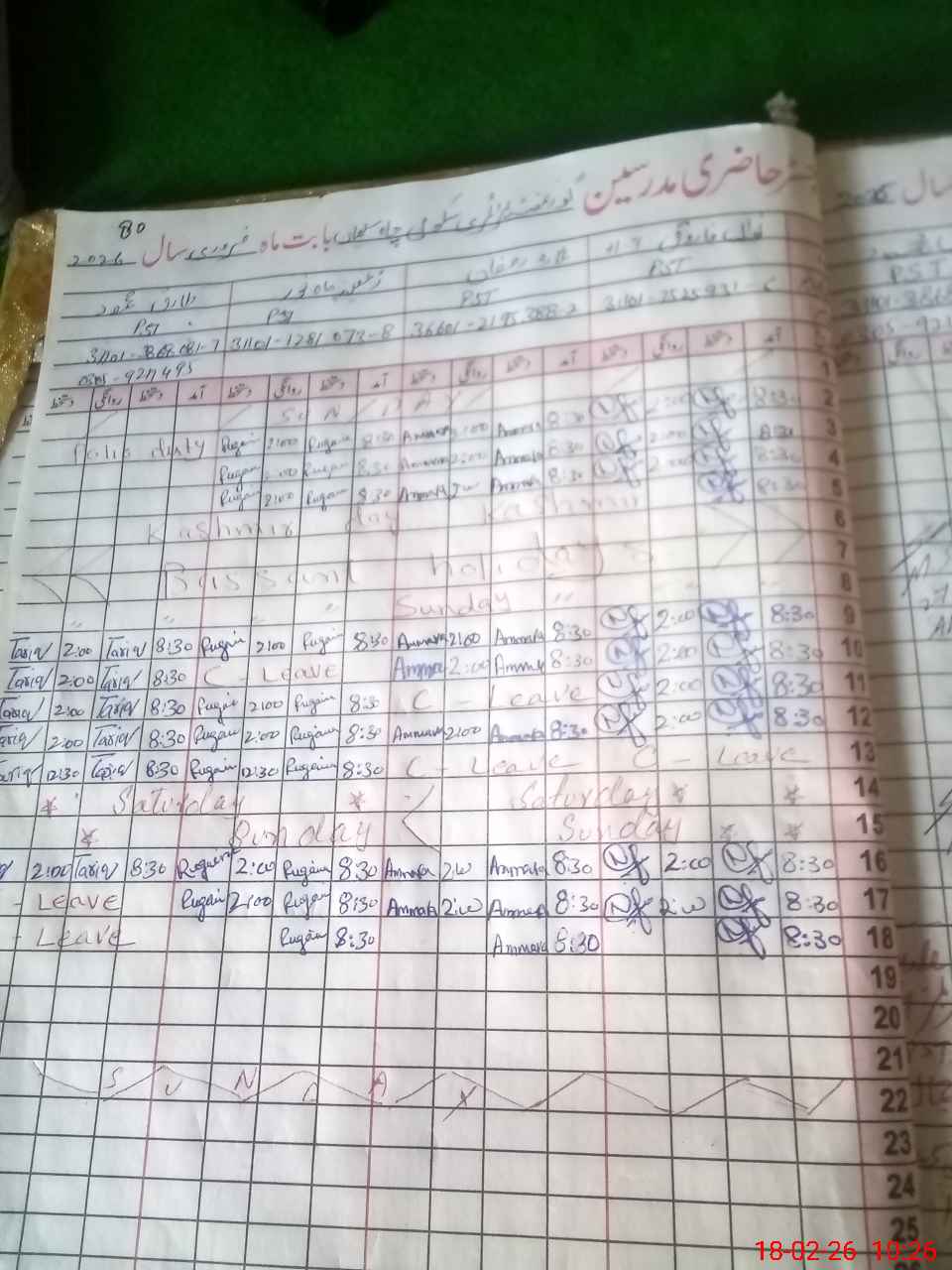 | Remarks (Use Separate Page if Required): teachers Tariq pst is on leave | |||||