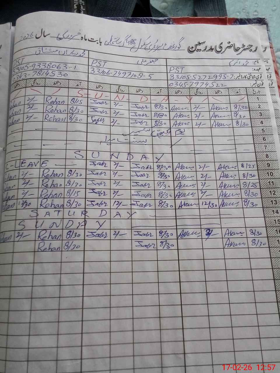 | Name: MU**** AK**** Designation: (School Headmaster's/Headmistress's) PST Phone/Cell Number: 03**** |
