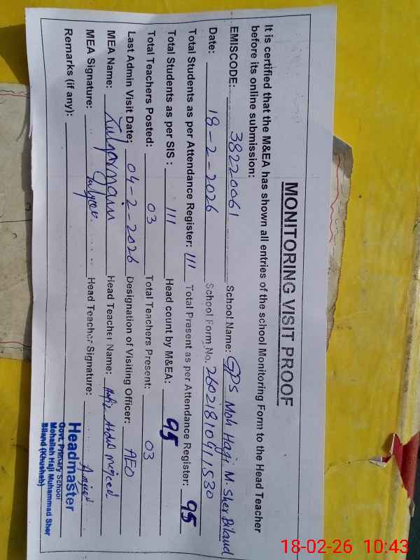 | EMIS Code: 38220061 | Name of School: GPS MOHALLA HAJI MUHAMMAD SHER BILAND | |||