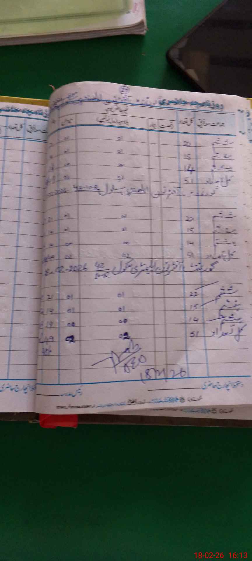 | No. of Students Present - Male | 0 | 35 | 31 | 26 | 44 | 44 | 22 | 236 | ||||||||