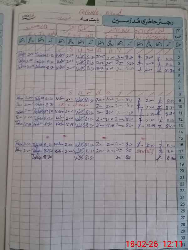 | CNIC | Full Name | Designation | R/C | Absence During Last Calender Month |