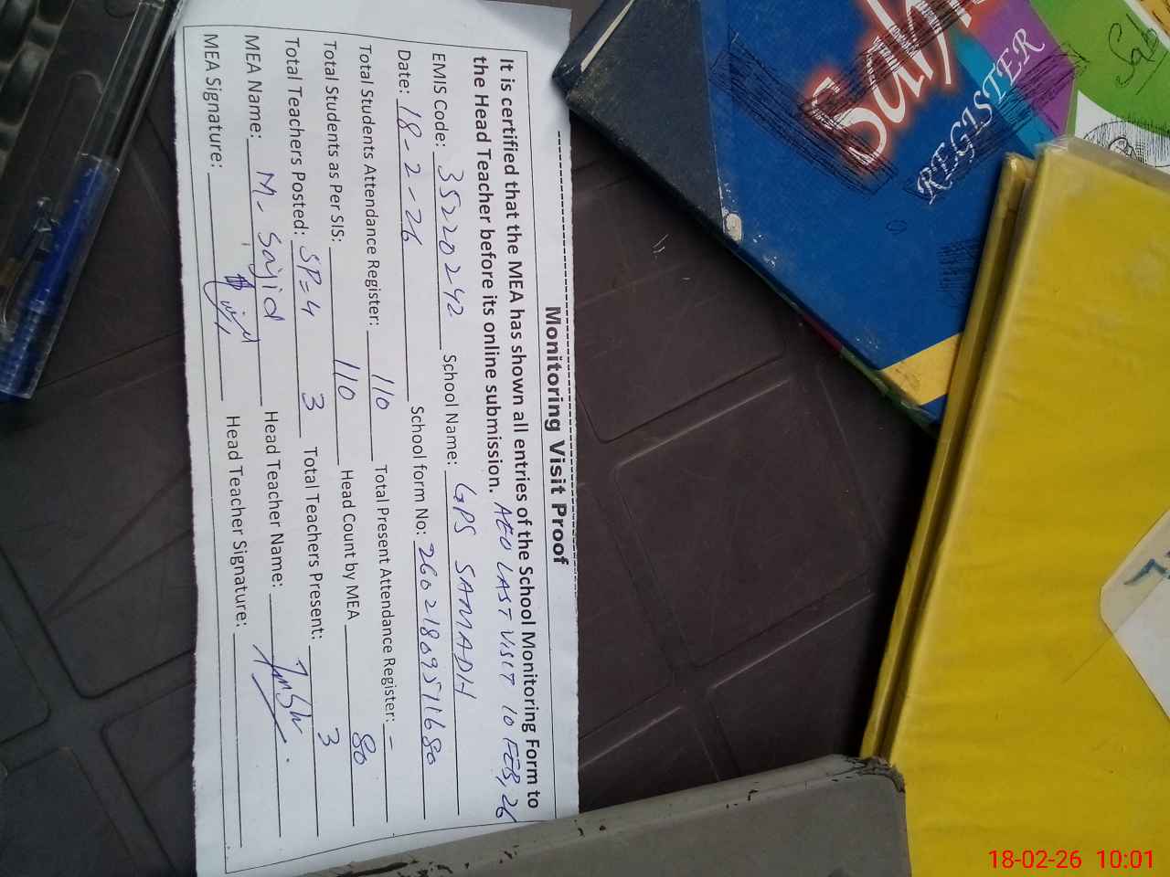 | EMIS Code: 35220242 | Name of School: GPS SAMADH | |||