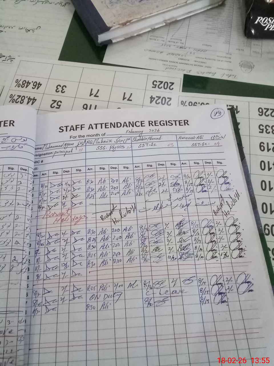 | Remarks (Use Separate Page if Required): Naib Qasid Hassan Sadaqat is sent to board office by head Present students percentage is 89 percent First year and Second year attendance is noted from roznamcha as they packed up at about 1230 hours 35220047 | |||||