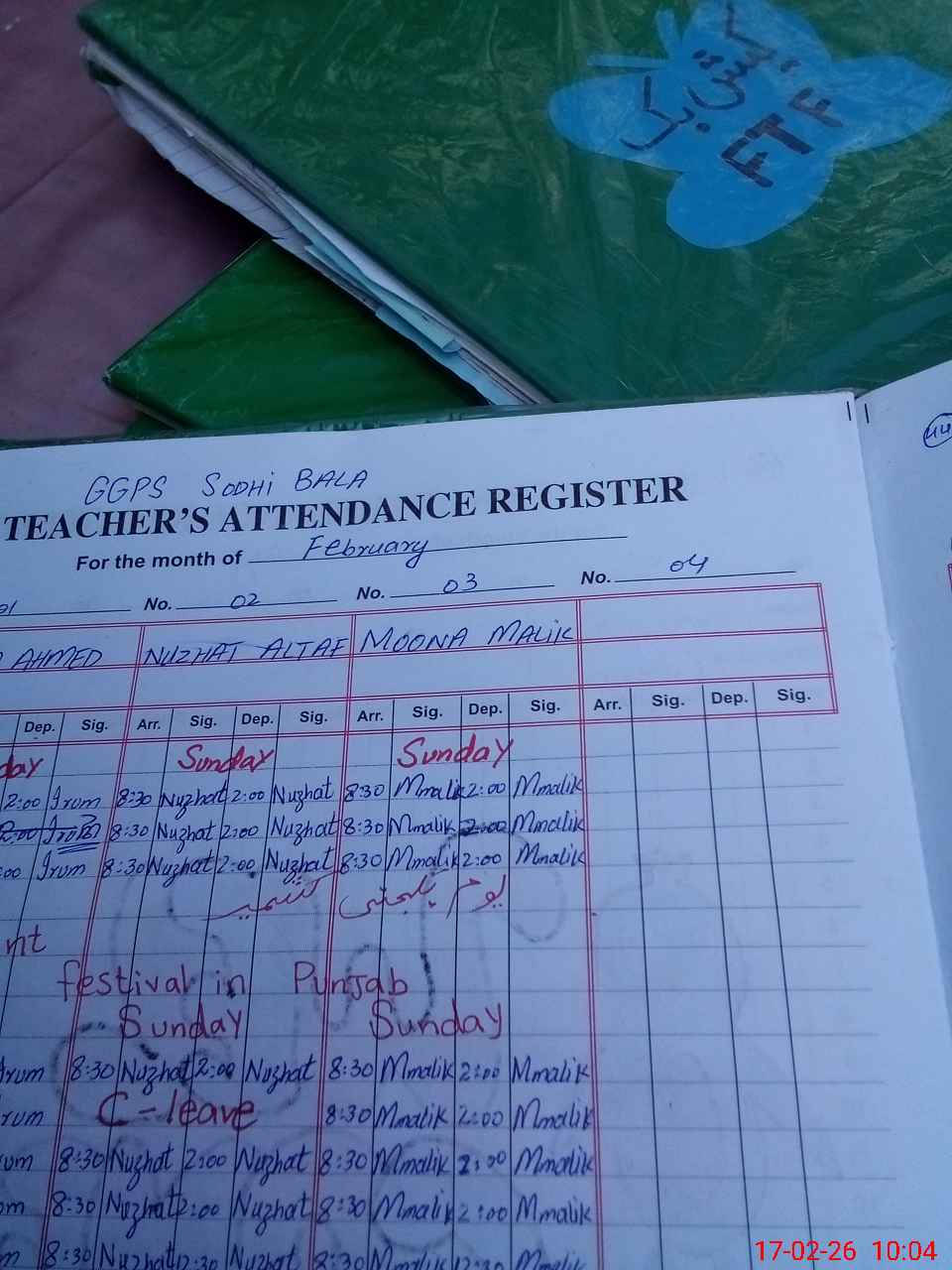 | Name: IR**** AH**** Designation: (School Headmaster's/Headmistress's) PST Phone/Cell Number: 03**** |