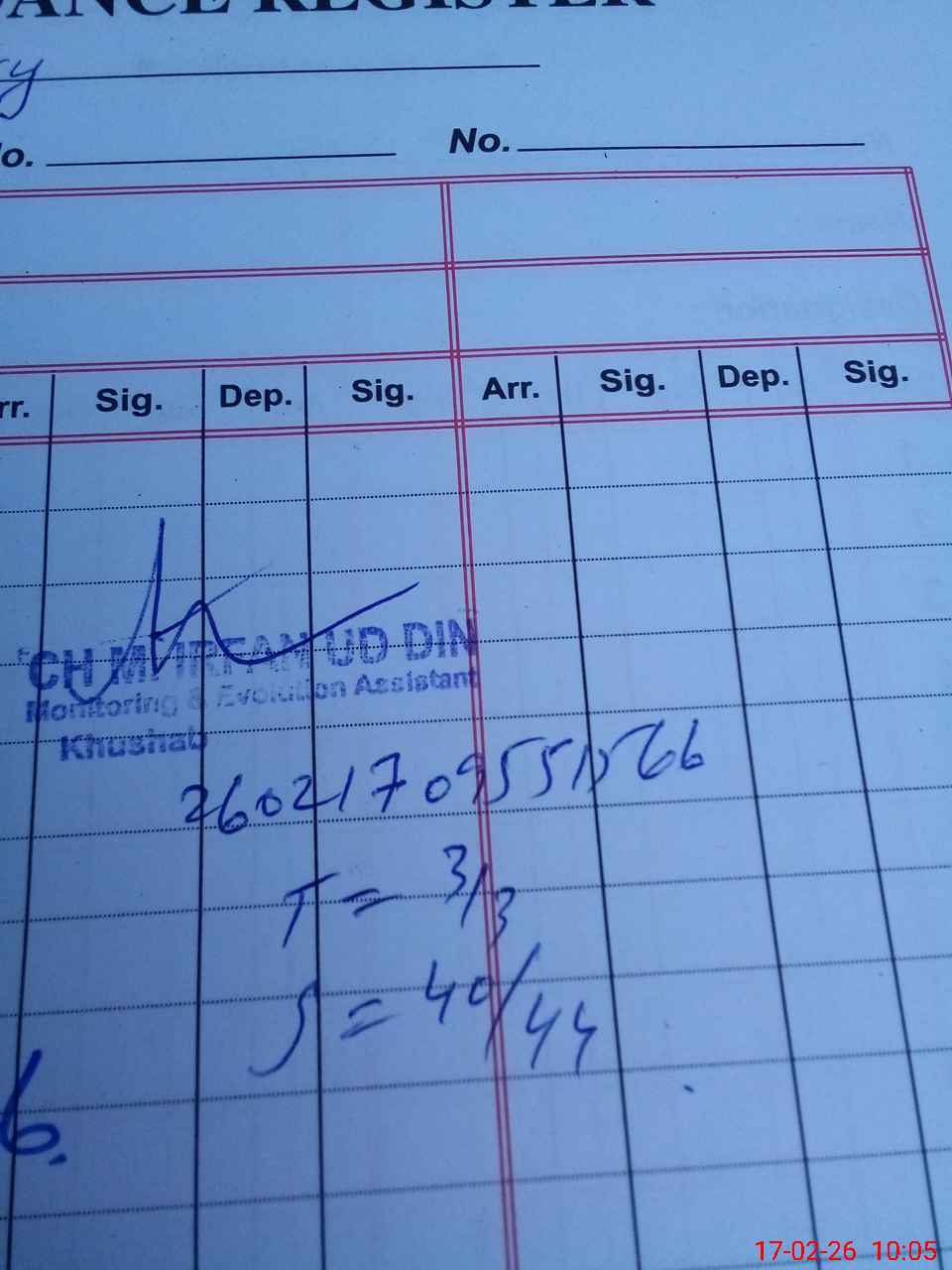 | Monitoring Date: 17-02-2026 | Start Time: 17-02-2026 09:40 AM | End Time: 17-02-2026 10:25 AM | Name of MEA: MU**** IR**** UDDI**** | |