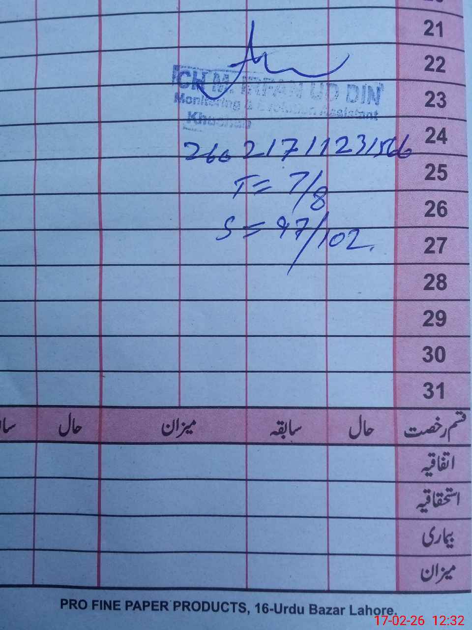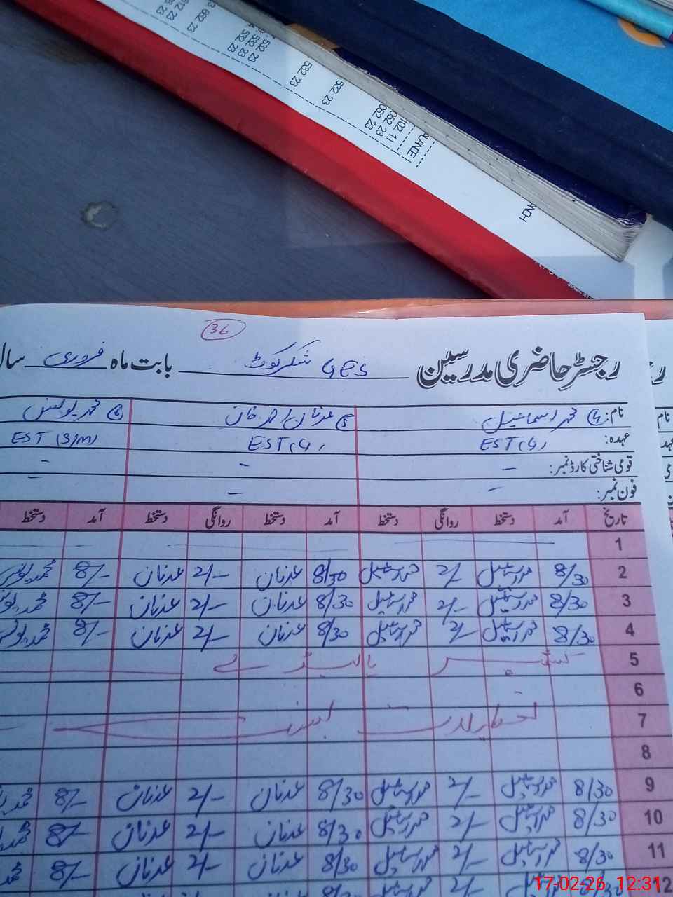 | CNIC | Full Name | Designation | R/C | Absence During Last Calender Month |