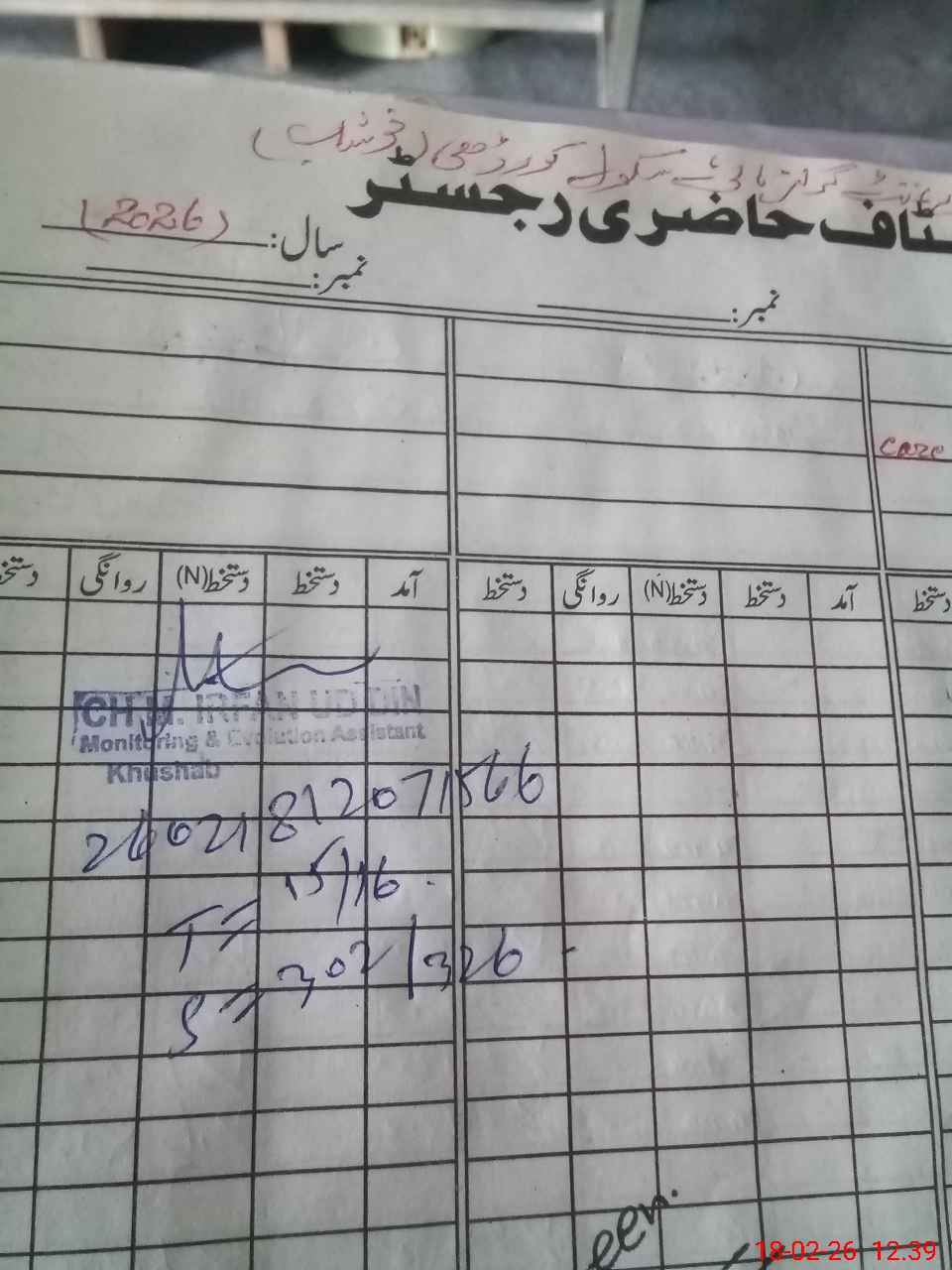 | Remarks (Use Separate Page if Required): gghs koradhi student on sis 326 student on register 326 head count 302 last visit 16 Feb DEO no teacher absent | |||||