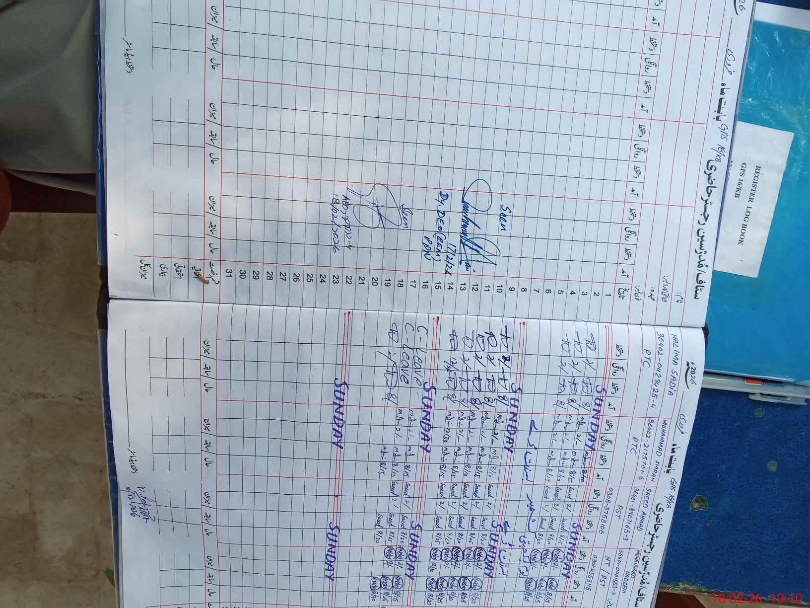| CNIC | Full Name | Designation | R/C | Absence During Last Calender Month |