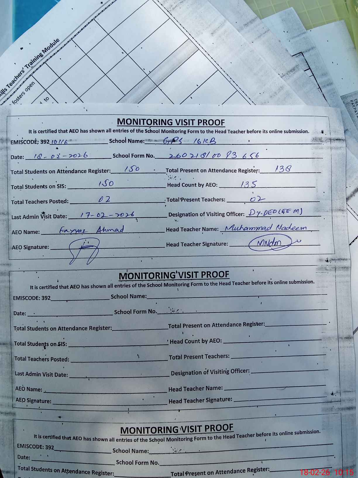| Monitoring Date: 18-02-2026 | Start Time: 18-02-2026 09:06 AM | End Time: 18-02-2026 10:15 AM | Name of MEA: Fa**** Ah**** | |