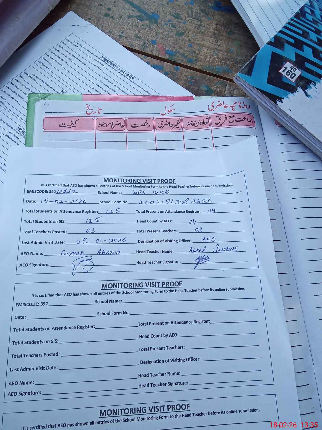 | Attendance Register | Head Teacher | MEA with School | Visit Proof |