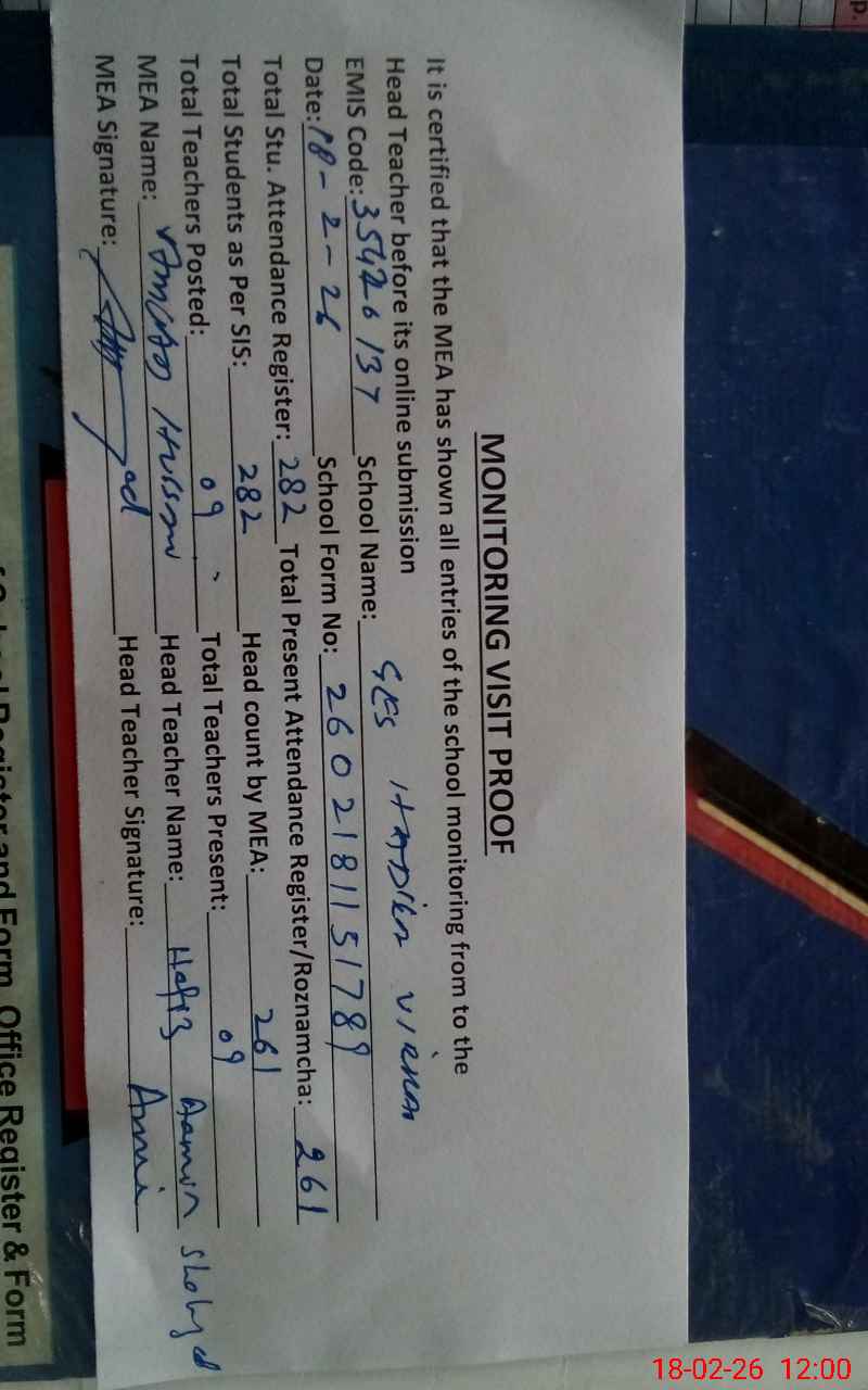 | Attendance Register | Head Teacher | MEA with School | Visit Proof |