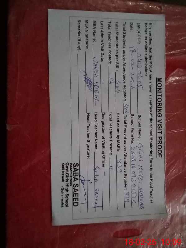 | EMIS Code: 34130405 | Name of School: GGHS KOTLI NAWAB | |||