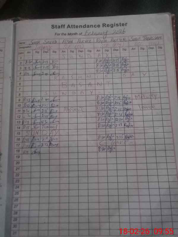 | 34**** | Ai**** Pe**** | SSE Computer Science | Contract | 0 | 0 | 31 | 0 | 0 | 0 | 0 | 0 | 0 | Absent (Un-Authorized) |