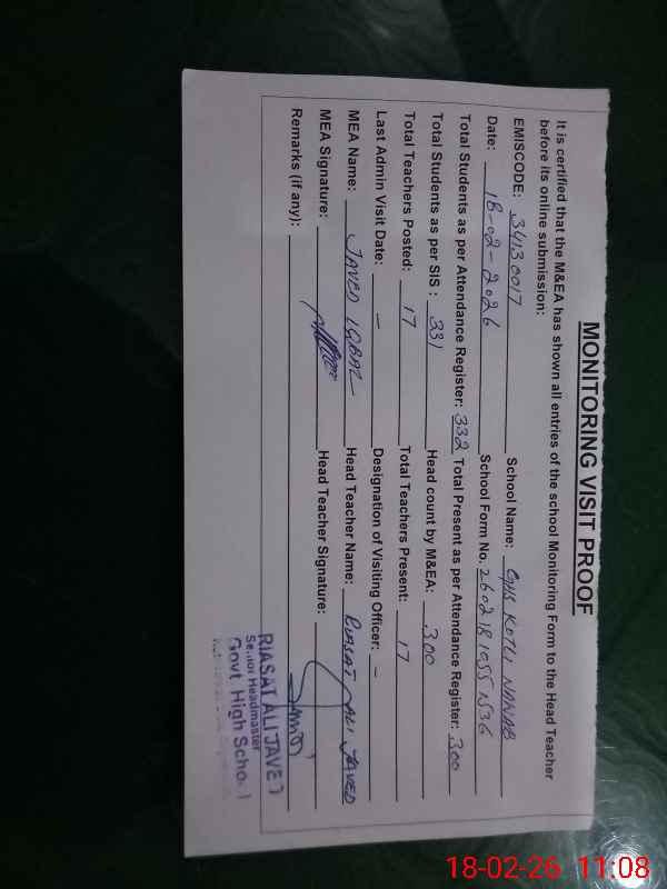 | EMIS Code: 34130017 | Name of School: GHS KOTLI NAWAB | |||