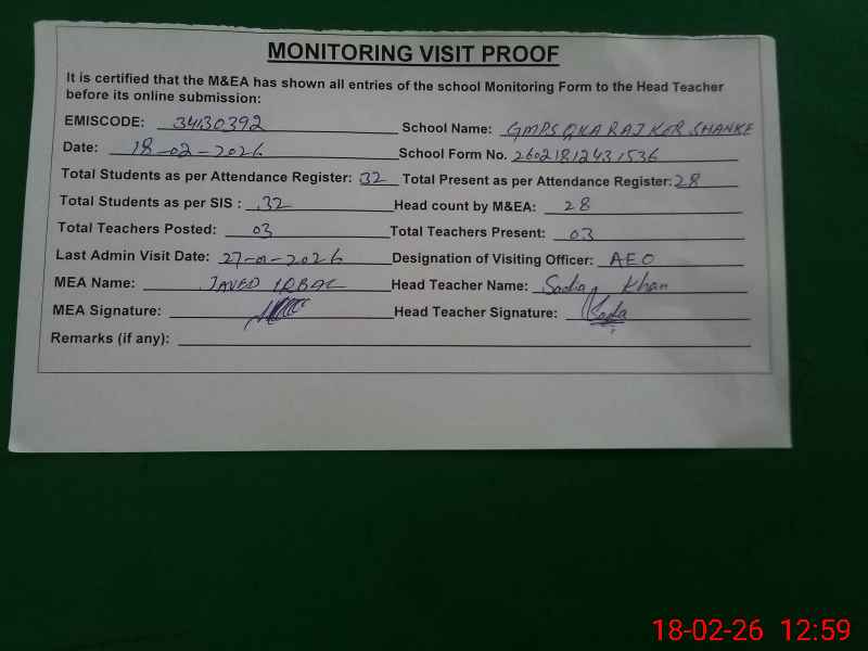 | EMIS Code: 34130392 | Name of School: GMPS QILA RAJ KOOR (SHANKE) | |||