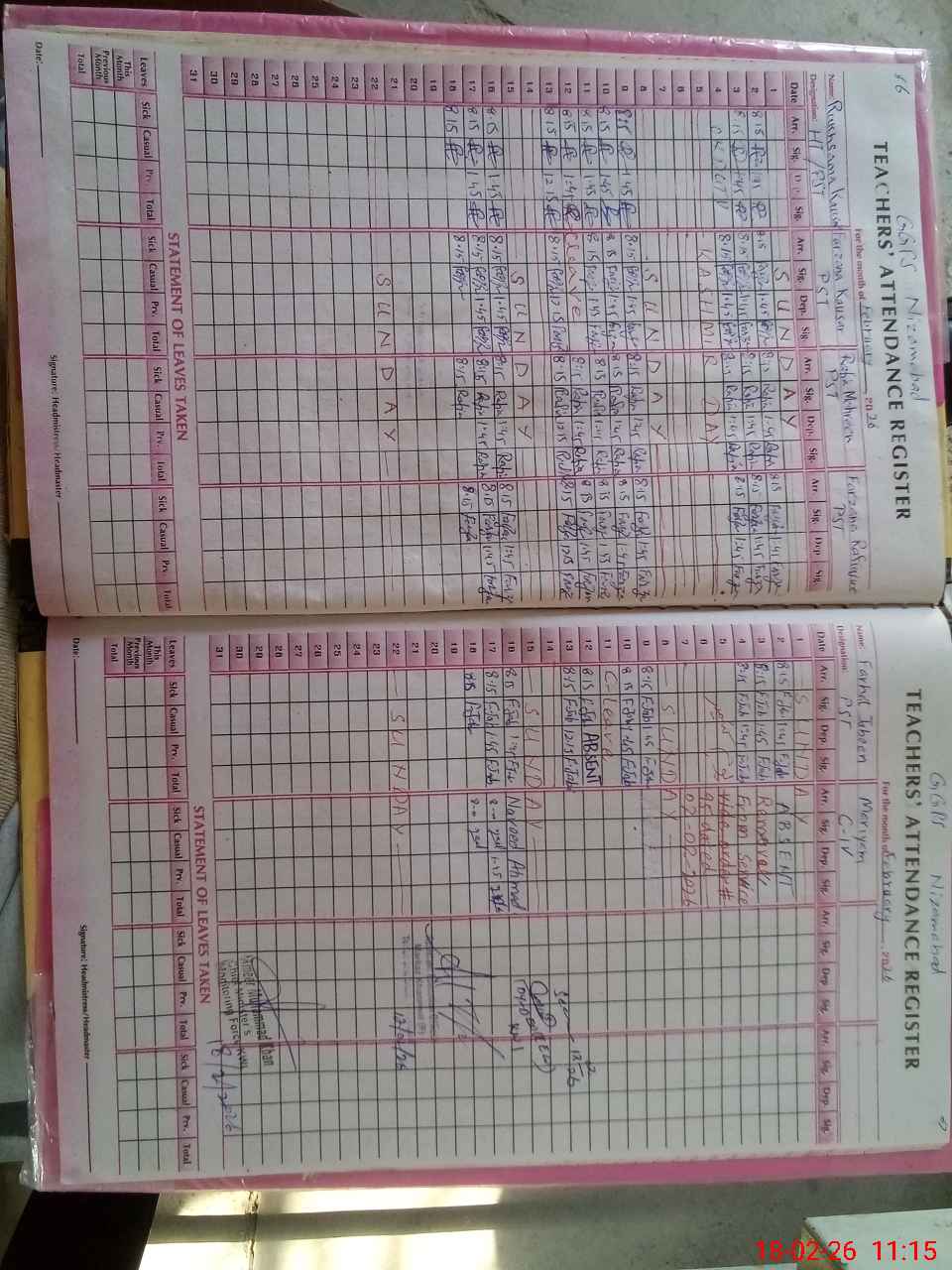 | Remarks (Use Separate Page if Required): NSB and FTF register not maintained for the month of January On line account not updated on SIS school area in worst condition | |||||