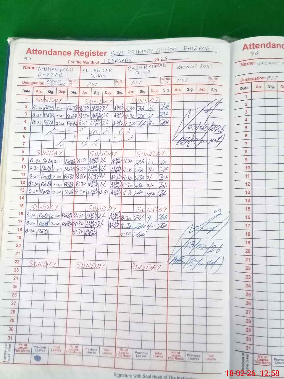 | Name: Mu**** Ra**** Designation: (School Headmaster's/Headmistress's) PST Phone/Cell Number: 03**** |