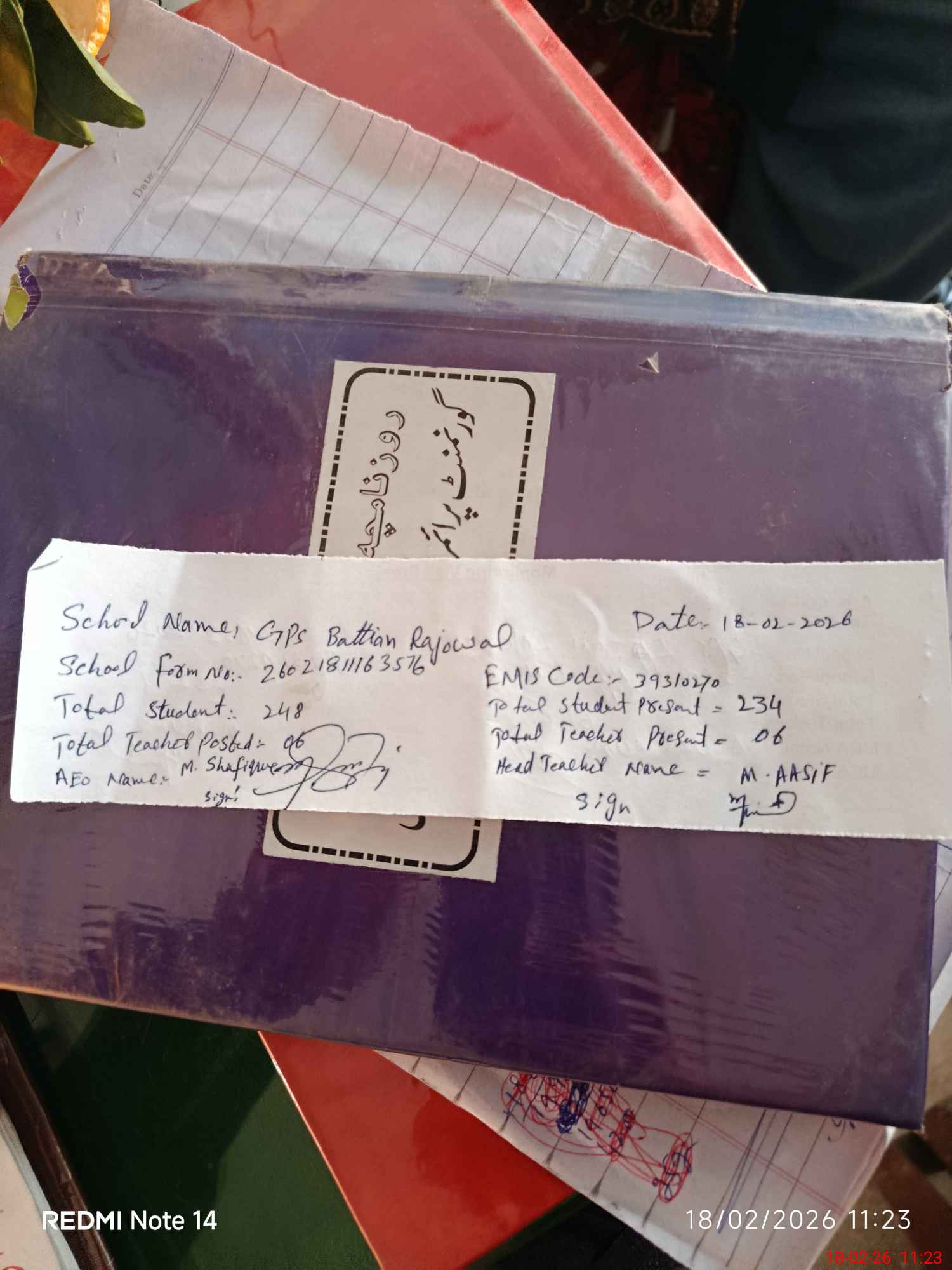 | EMIS Code: 39310270 | Name of School: GPS BATTIAN RAJOWAL | |||
