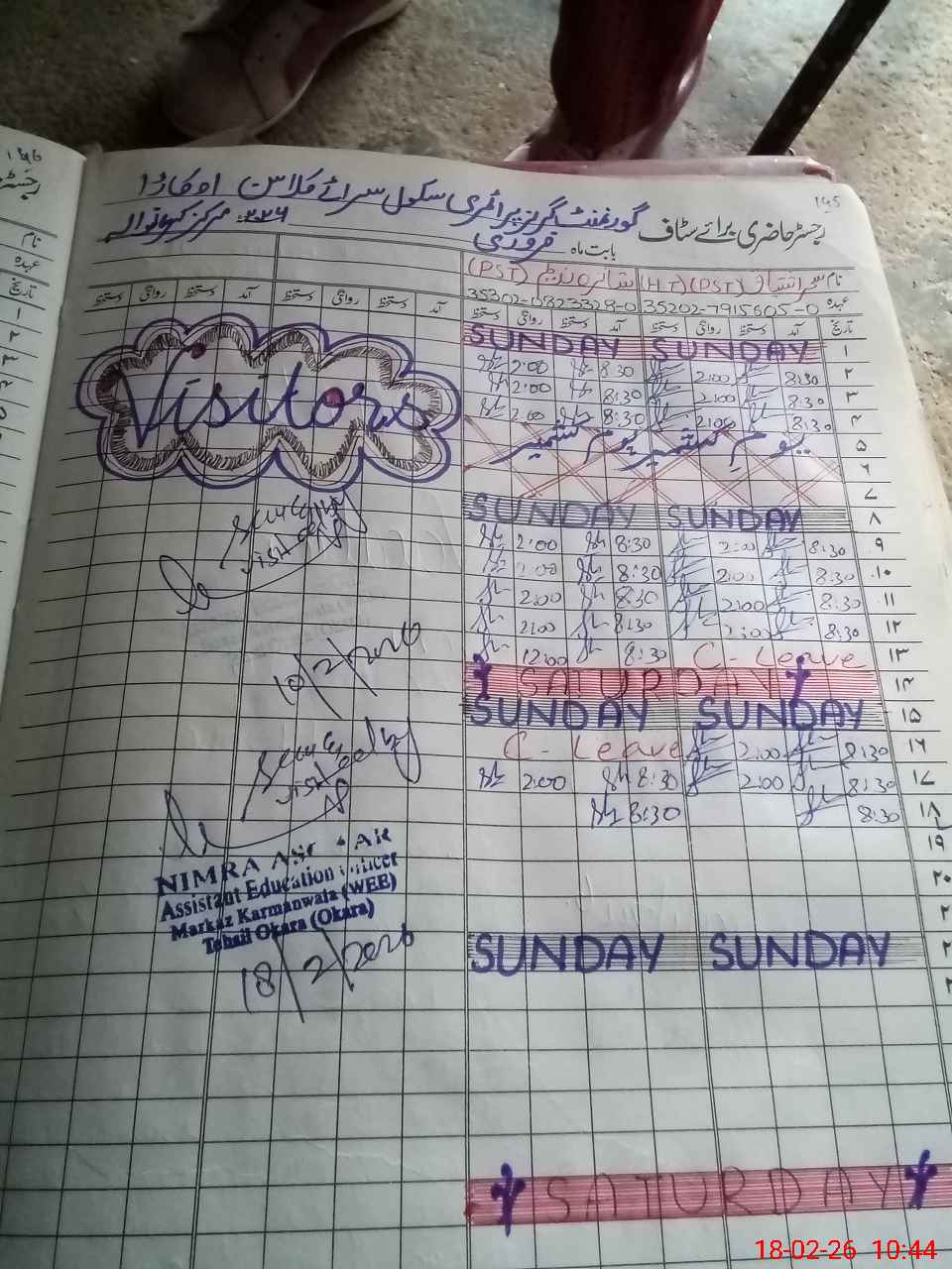 | District: OKARA | Tehsil: OKARA | Markaz: KARMAN WALA - FEMALE | Level: Primary | |