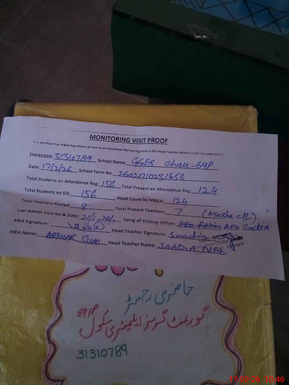 | EMIS Code: 31310789 | Name of School: GGES 69/P | |||