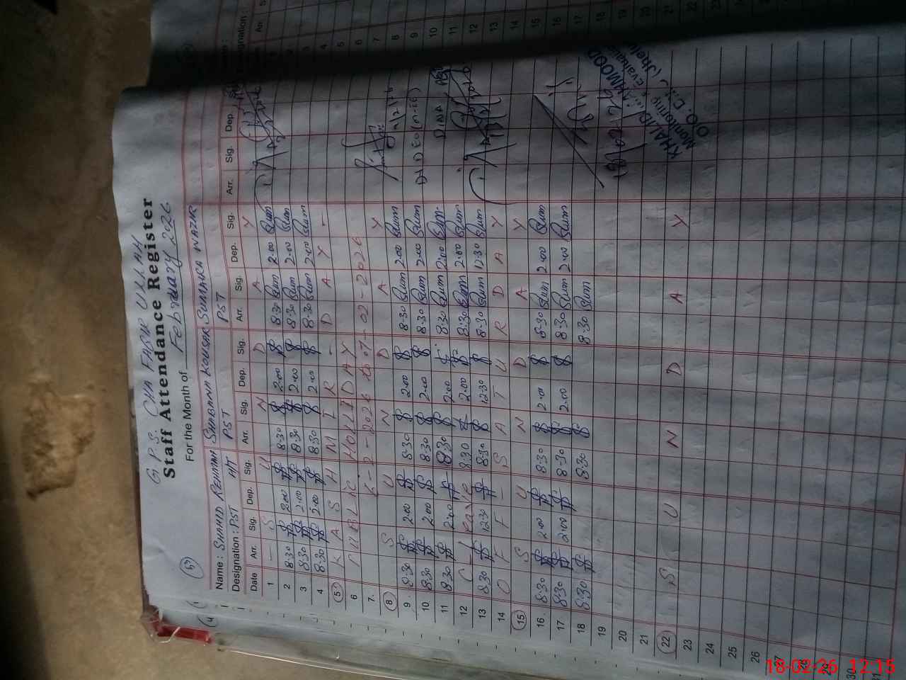 | CNIC | Full Name | Designation | R/C | Absence During Last Calender Month |