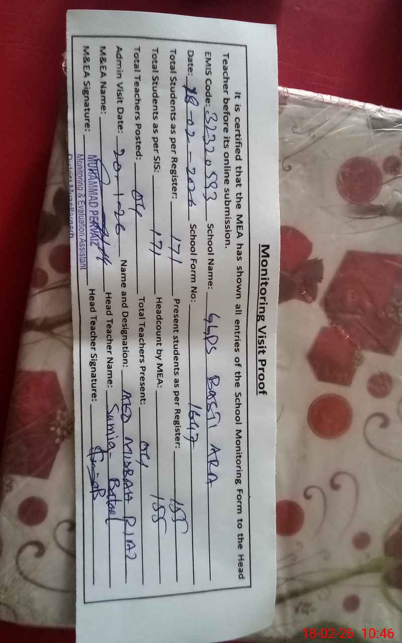 | EMIS Code: 32320593 | Name of School: GGPS BASTI ARA | |||