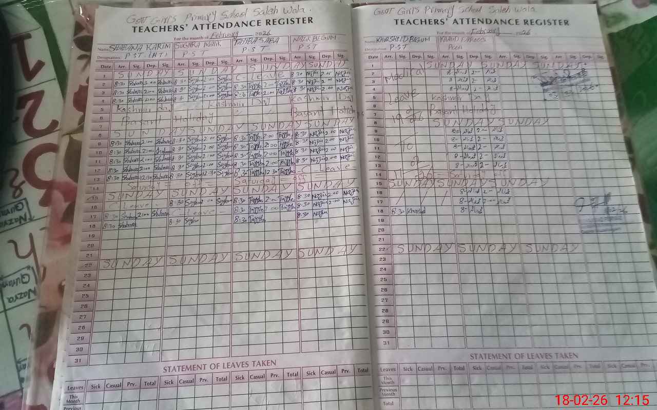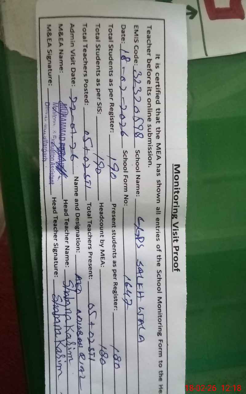 | EMIS Code: 32320598 | Name of School: GGPS SALEH WALA | |||