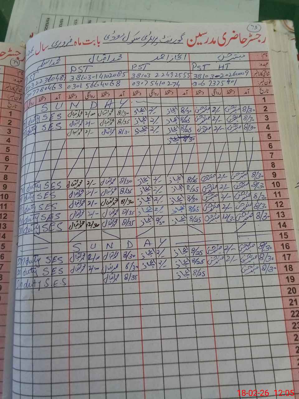 | Name: Mu**** Ha**** Designation: (School Headmaster's/Headmistress's) PST Phone/Cell Number: 03**** |