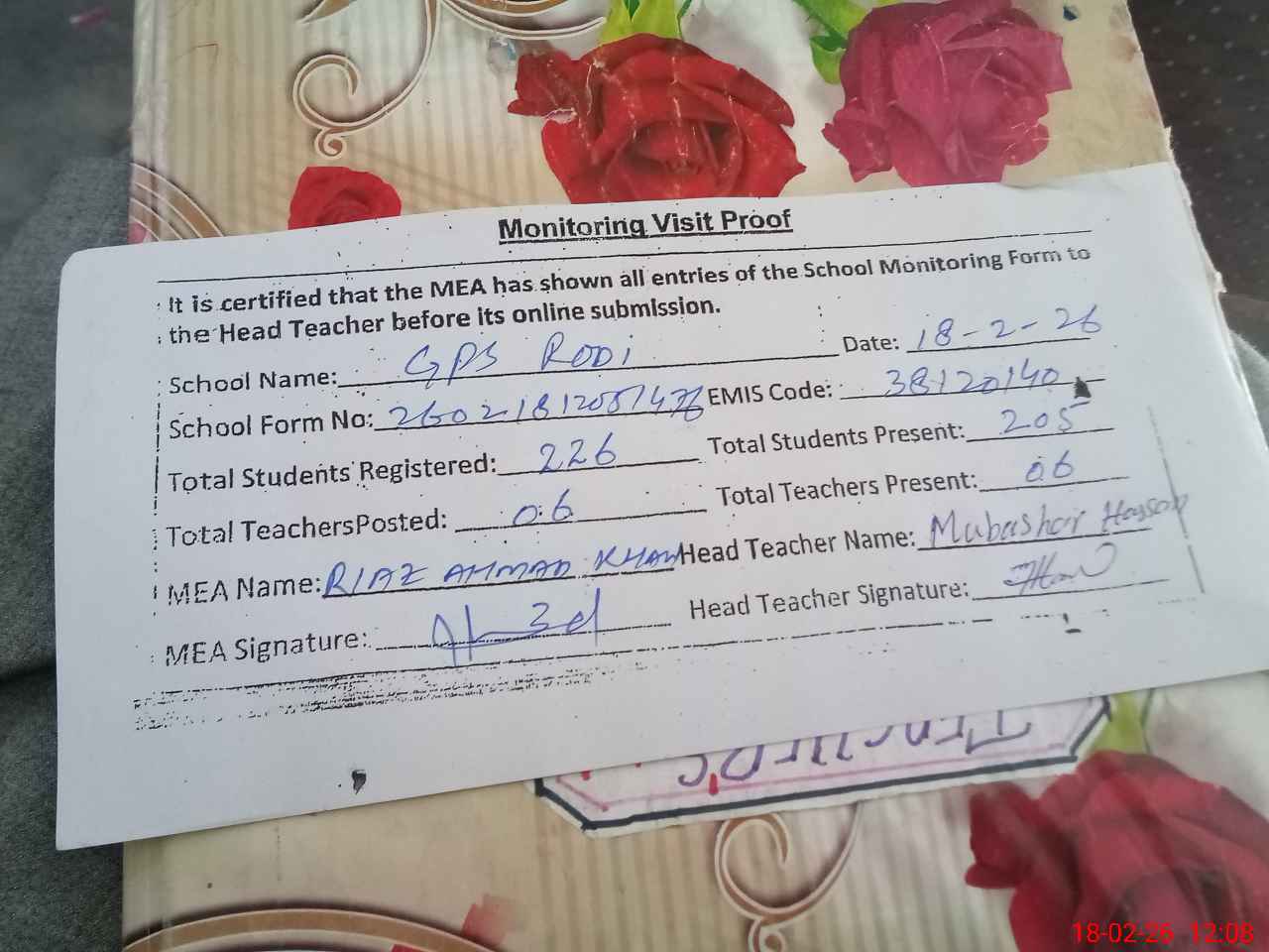 | EMIS Code: 38120140 | Name of School: GPS RODDI | |||