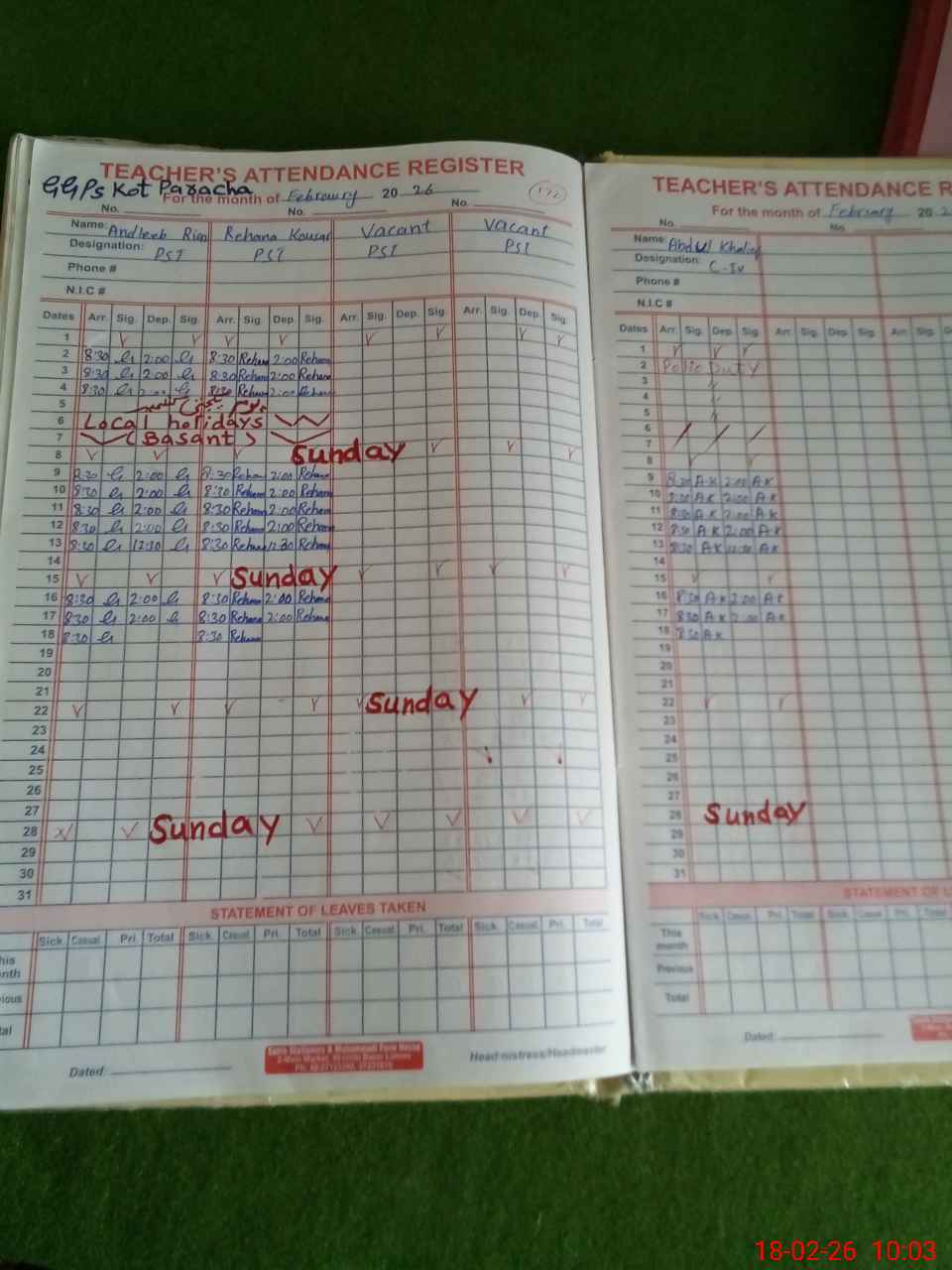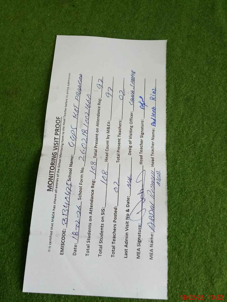 | EMIS Code: 31340475 | Name of School: GGPS KOT PRAACHA | |||