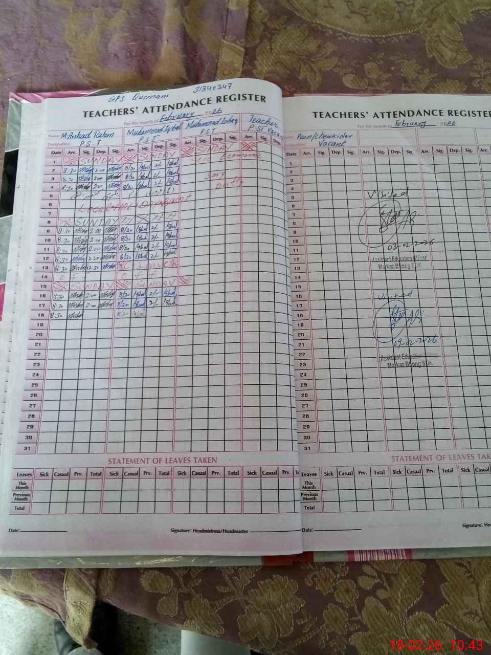 | Name: MAr**** Ra**** Designation: (School Headmaster's/Headmistress's) PST Phone/Cell Number: 03**** |