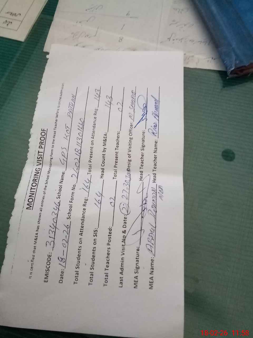 | EMIS Code: 31340346 | Name of School: GPS KOT PATHAN | |||