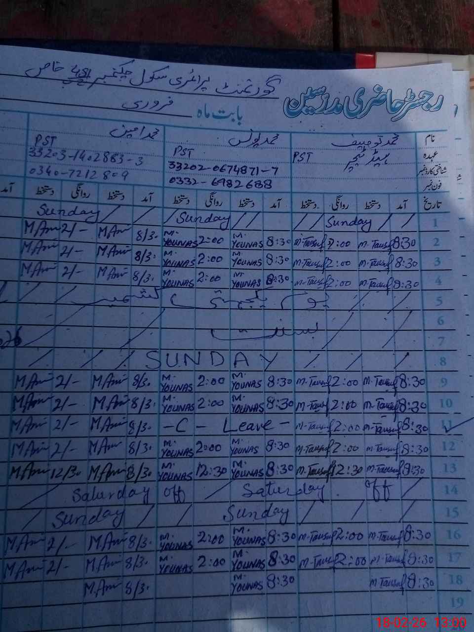 | Name: Mu**** Ta**** Designation: (School Headmaster's/Headmistress's) PST Phone/Cell Number: 03**** |