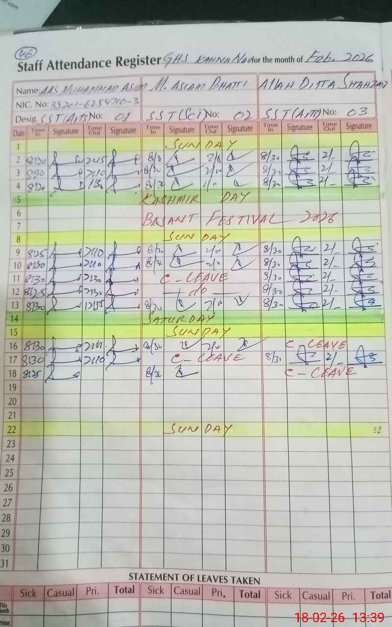| 35**** | Mu**** Im**** Si**** | SST Science | Regular | 0 | 0 | 31 | 0 | 0 | 0 | 0 | 0 | 0 | Absent (Un-Authorized) |