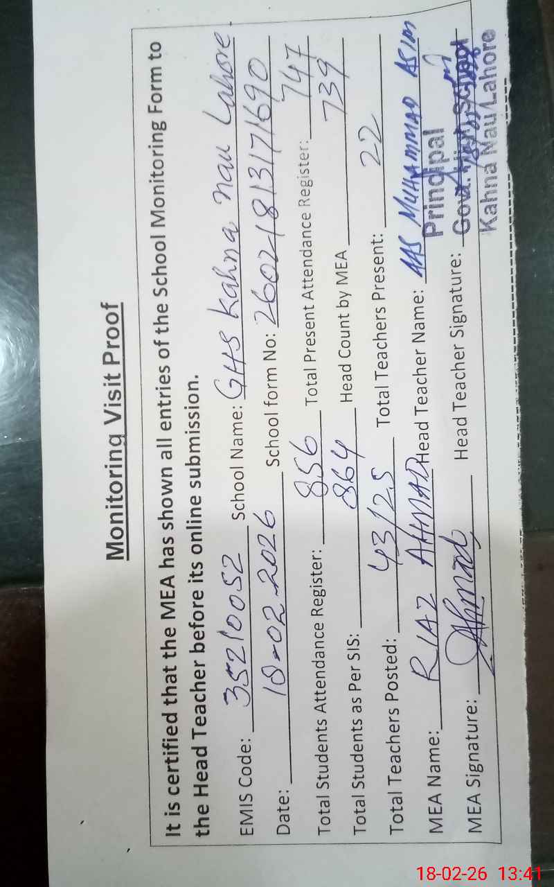 | EMIS Code: 35210052 | Name of School: GHS KAHNA NAU | |||