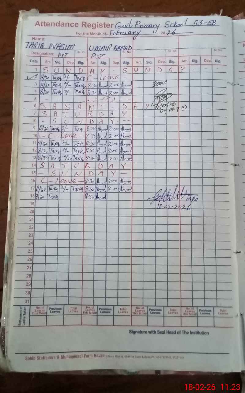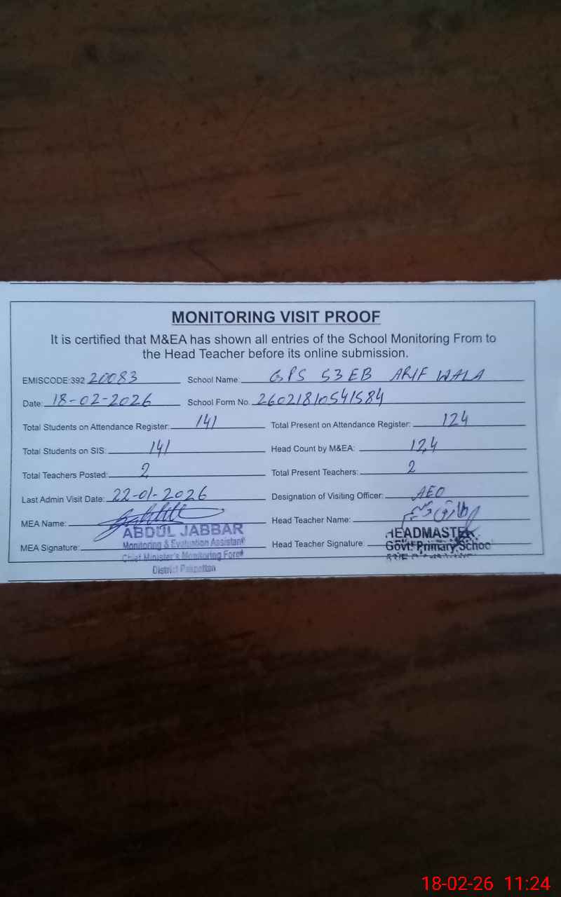 | EMIS Code: 39220083 | Name of School: GPS 53 EB P/O ARIF WALA | |||