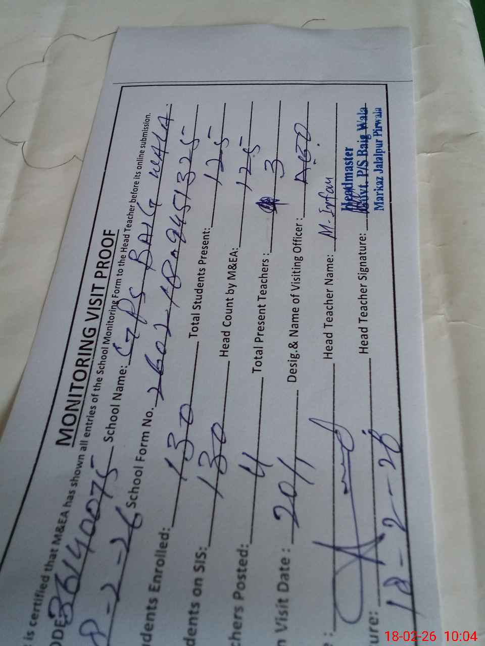 | EMIS Code: 36140075 | Name of School: GPS BAIG WALA MOZA P/O JALAL PUR PIR WALA | |||