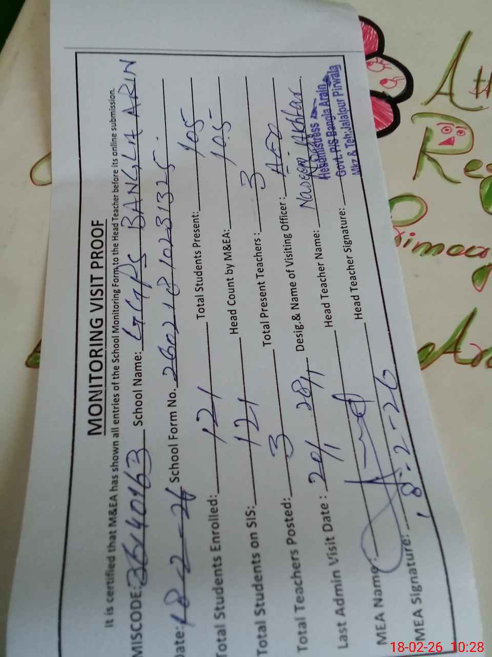 | EMIS Code: 36140163 | Name of School: GGPS BANGLA ARAIN TEH. JALALPUR PIRWALA | |||