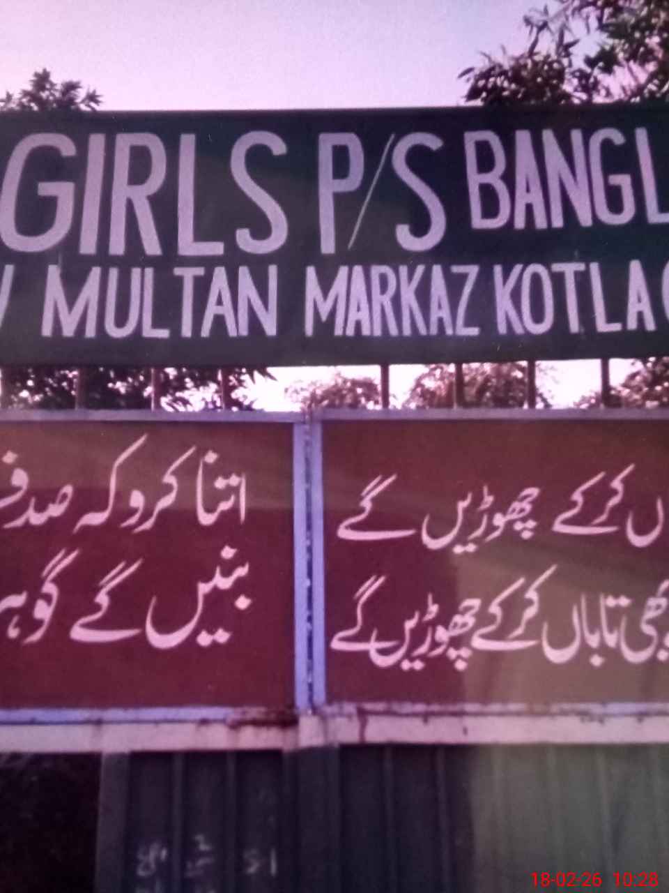 | District: MULTAN | Tehsil: JALALPUR PIRWALA | Markaz: KOTLA CHAKER - FEMALE | Level: Primary | |