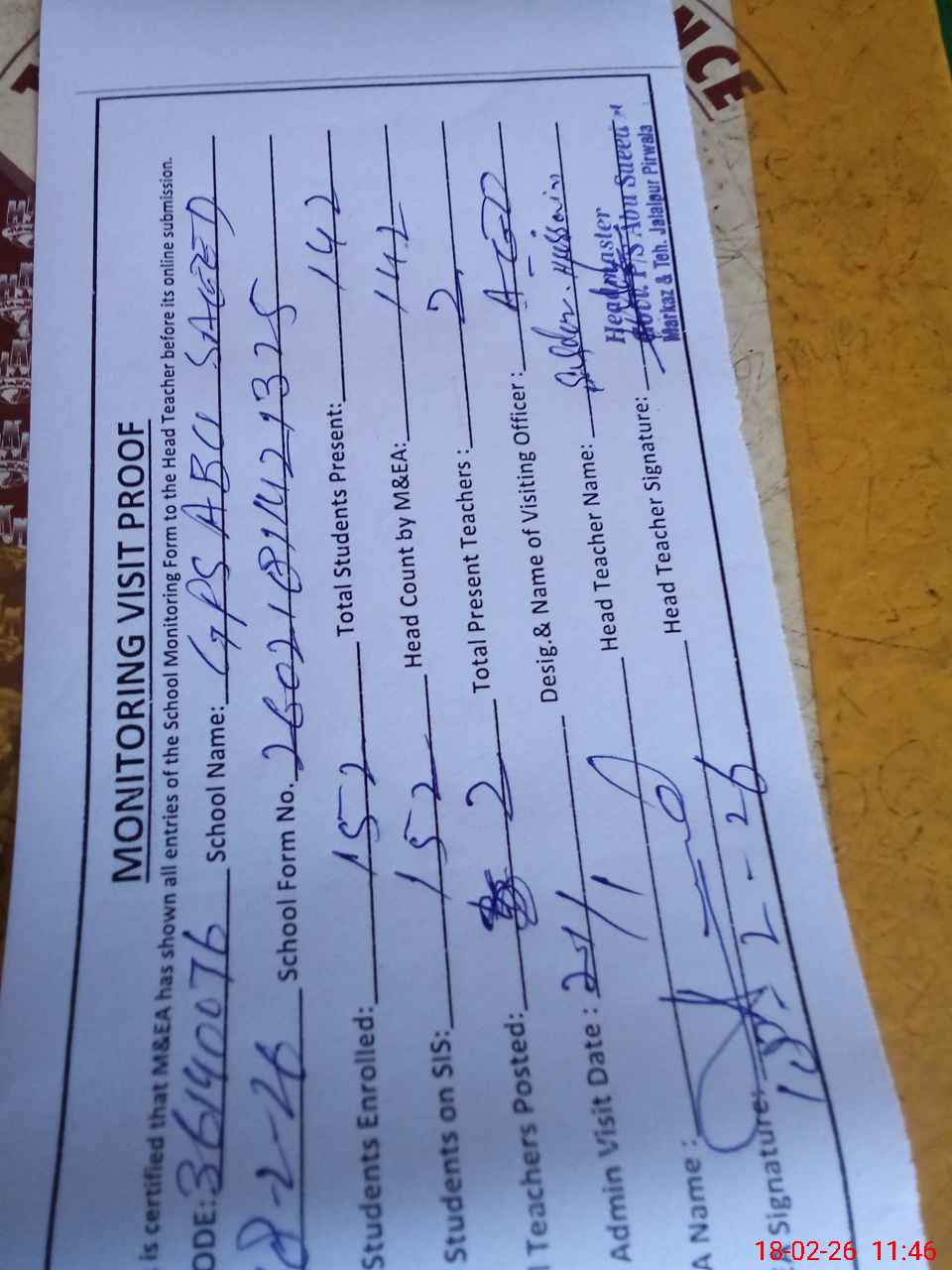 | EMIS Code: 36140076 | Name of School: GPS ABU SAEED P/O BAHADUR PUR ABO SAEED | |||