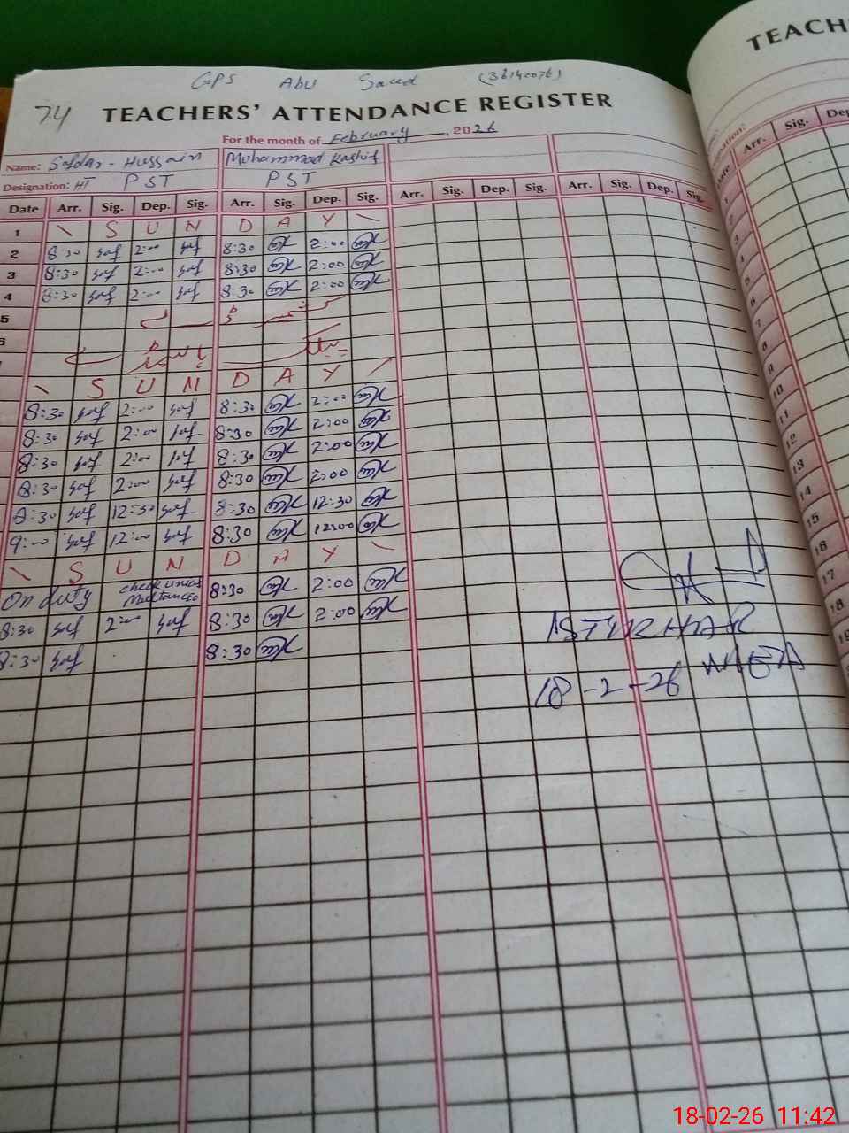| Name: SA**** HU**** Designation: (School Headmaster's/Headmistress's) PST/PTC/JV Phone/Cell Number: 03**** |